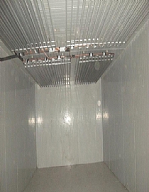 冷庫(kù)鋁排管制冷是通過(guò)掛在冷庫(kù)內(nèi)頂部的直管S型結(jié)構(gòu)鋁型材產(chǎn)生冷氣向下形成煙道效應(yīng)從而實(shí)現(xiàn)冷庫(kù)降