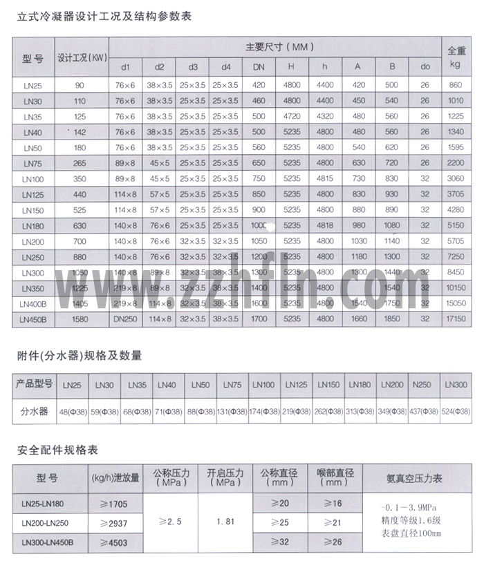 立式冷凝器是蒸汽壓縮制冷系統(tǒng)中的換熱設(shè)備之一,工作中,冷卻水由上部進(jìn)入冷凝管內(nèi),在分水器的作用下以螺旋狀流過管程,期間吸收殼程中的高溫高壓氣體的熱量,使之冷凝成液體。 本系列冷凝器適用于化工、醫(yī)藥.空調(diào)、冷藏諸多行業(yè)。技術(shù)特性設(shè)計(jì)壓力:20MPa 設(shè)計(jì)溫度:50℃ 水壓試驗(yàn)壓力:25MPa 氣密試驗(yàn)壓力:20MPa制 冷 劑:R717 進(jìn)水口水溫:≥32℃ 冷卻水流量:≥1m³/㎡