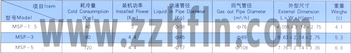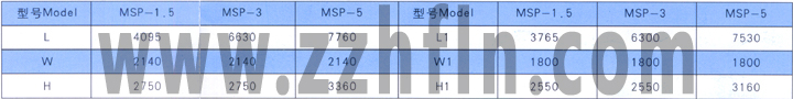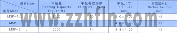 MSP板式擱架凍結(jié)器主要尺寸(mm)