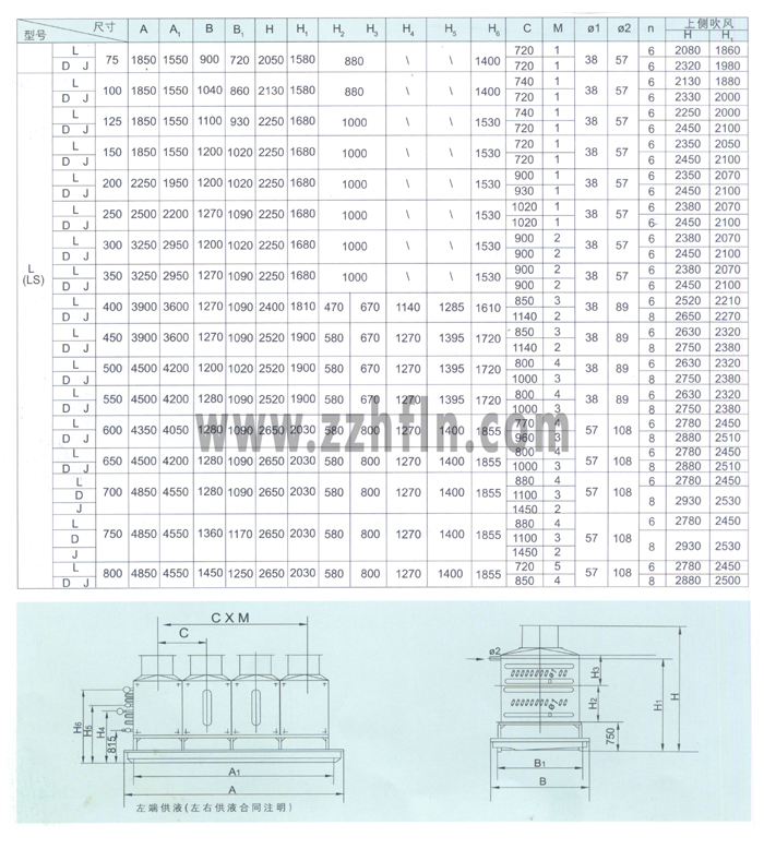 GTL系列落地頂吹、上側(cè)吹、平吹式性能參數(shù)表