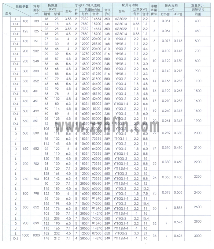 DL系列凍結(jié)、冷藏用吊頂冷風(fēng)機(jī)尺寸表參數(shù)表
