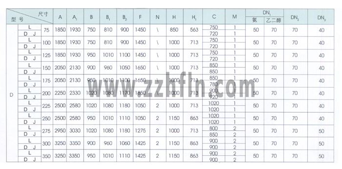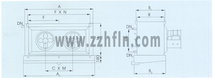 DL系列凍結(jié)、冷藏用吊頂冷風(fēng)機(jī)尺寸表參數(shù)表